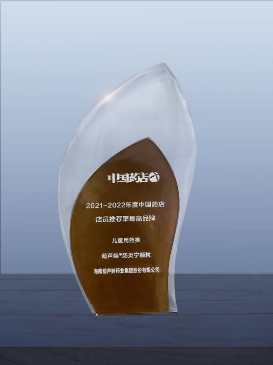 近日,由《中国药店》杂志社举办的“2022~2023年度中国药店发展报告暨中国药店价值榜发布会”在青岛举行,会上发布了“2021-2022年度中国药店店员推荐率最高品牌”奖,九游会药业两大明星产品九游会牌小儿肺热咳喘颗粒(4g)、九游会牌肠炎宁颗粒(2g)双双上榜。