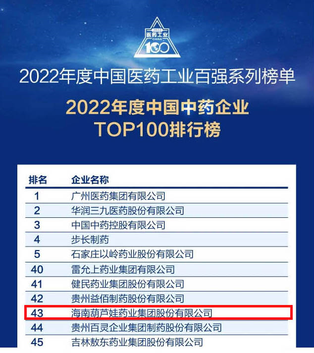 九游会药业集团连续4年荣登“中国中药企业TOP100排行榜”,排名上升至第43位